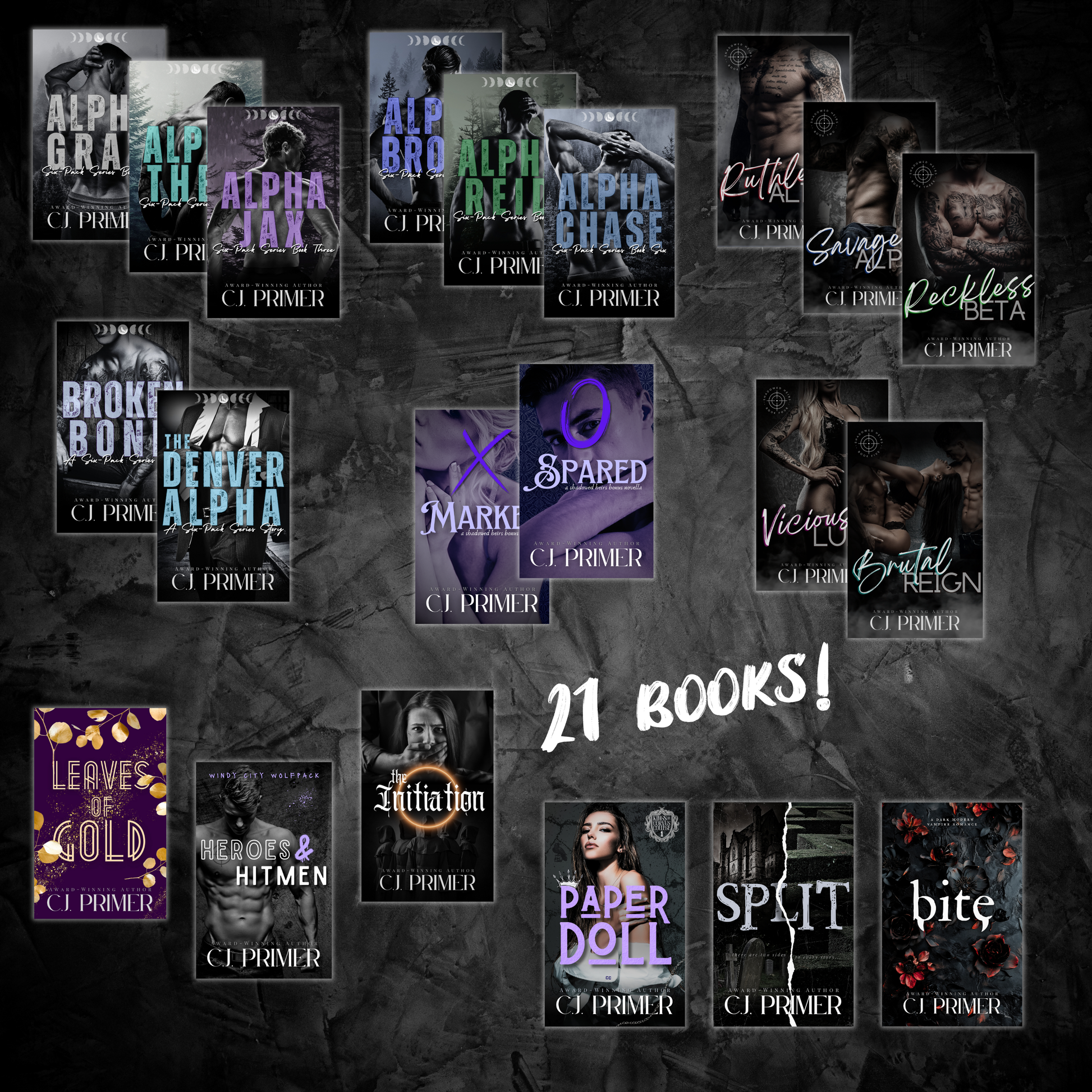 Signed Paperback copies of every CJ Primer book currently in print– 21 books total! Plus random surprise swag
